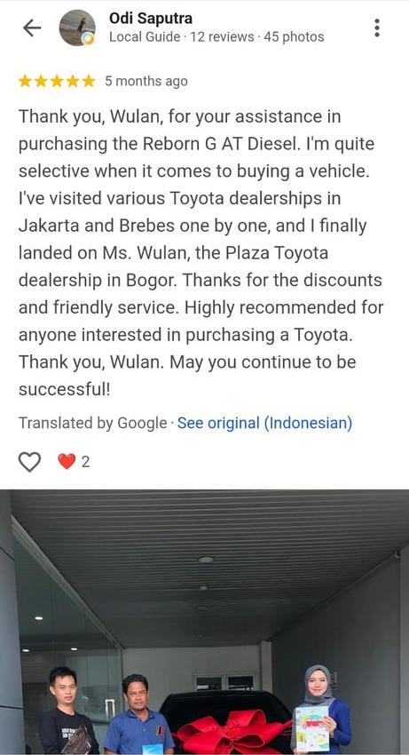 Sales terbaik berpengalaman untuk memberikan solusi yang paling sesuai untuk rencana pembelian mobil anda.
